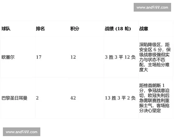 欧塞尔vs巴黎圣日耳曼法甲焦点战争冠格局走向解析前瞻深度看点